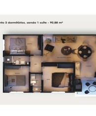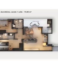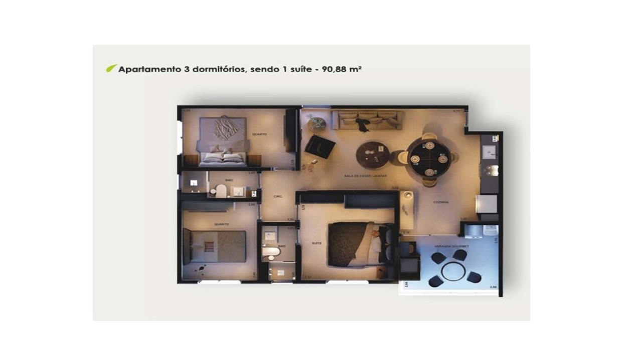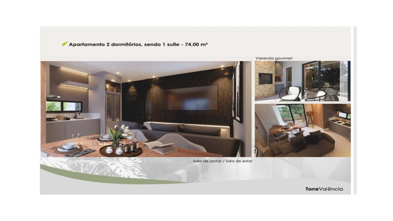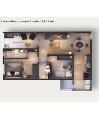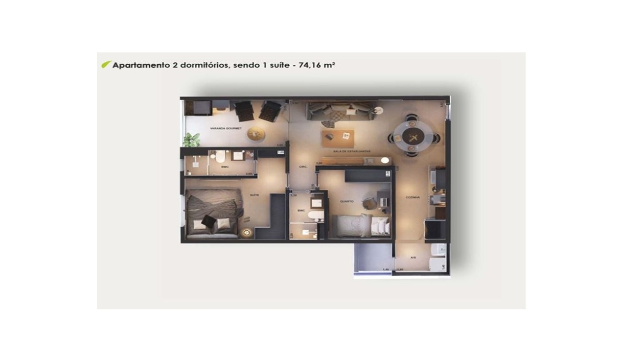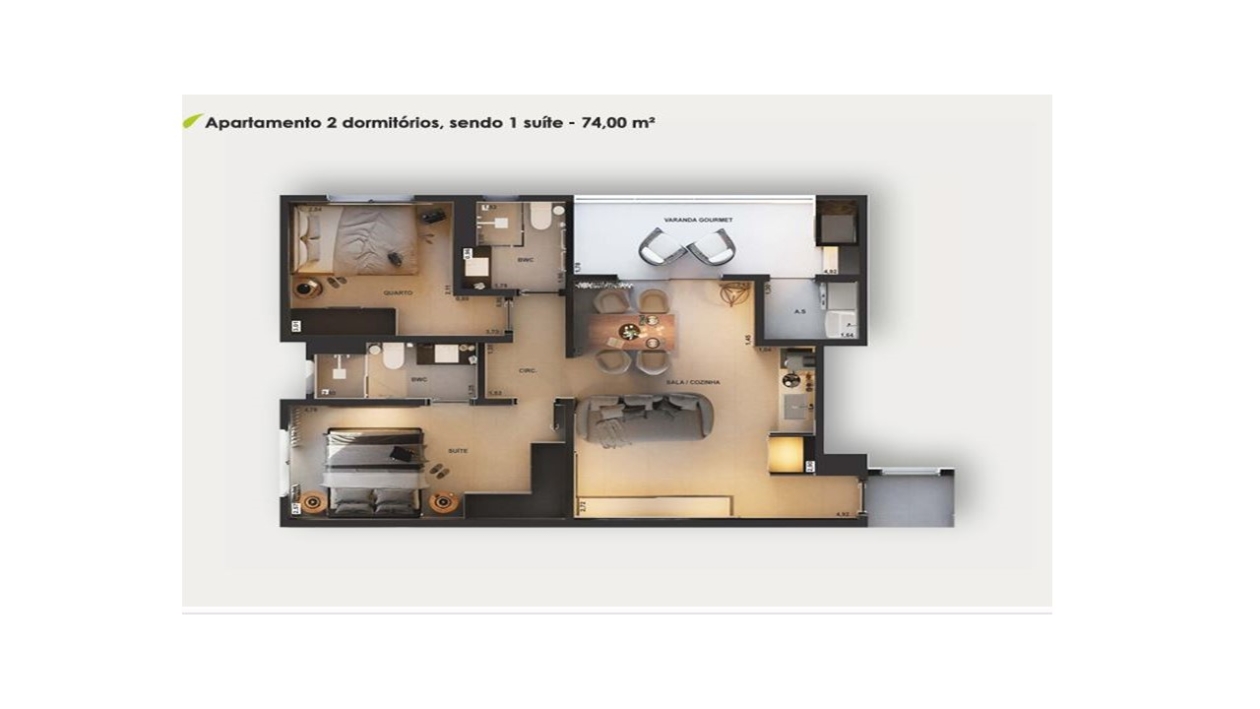 Apartamento: Com Varanda Gourmet, sala/estar, sala/jantar cozinha integrada com 02 quartos sendo 01 suíte master.