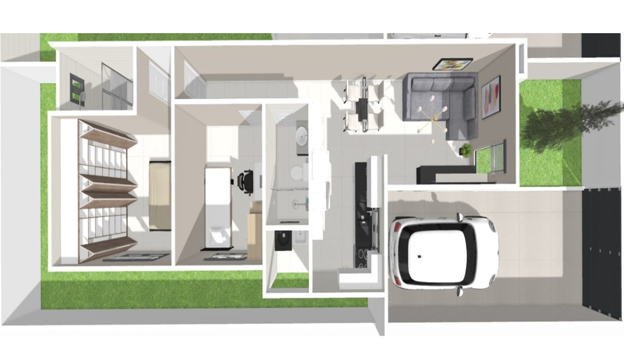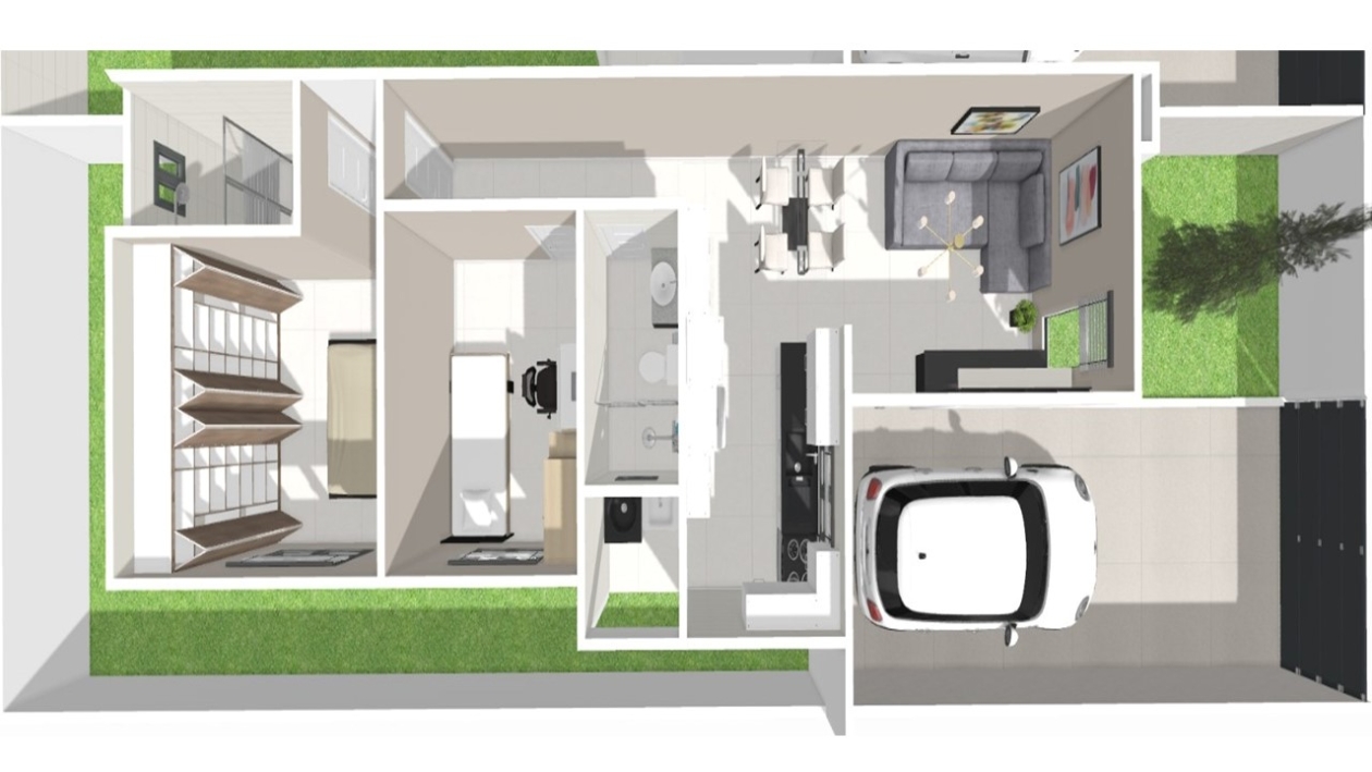 Casa, em alvenaria contendo 02 dormitório sendo 1 uma suíte 1bwc social, sala estar, cozinha/copa integrada com lavanderia e garagem.